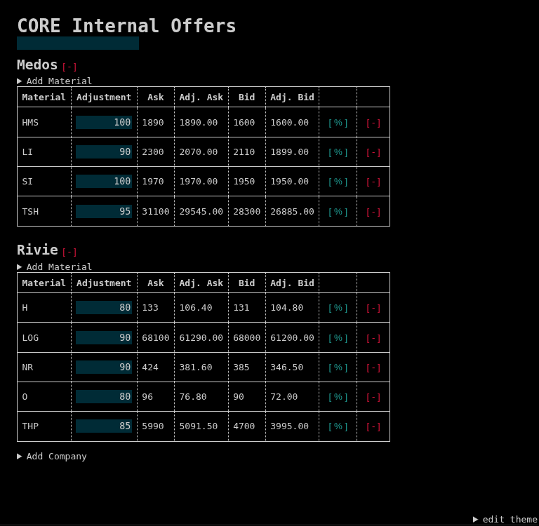coreio is a tiny spreadsheet app for Spreadsheets: The Game, to coordinate internal trades between CORE members. It's built with quartzgun and uhhhh... that's it.